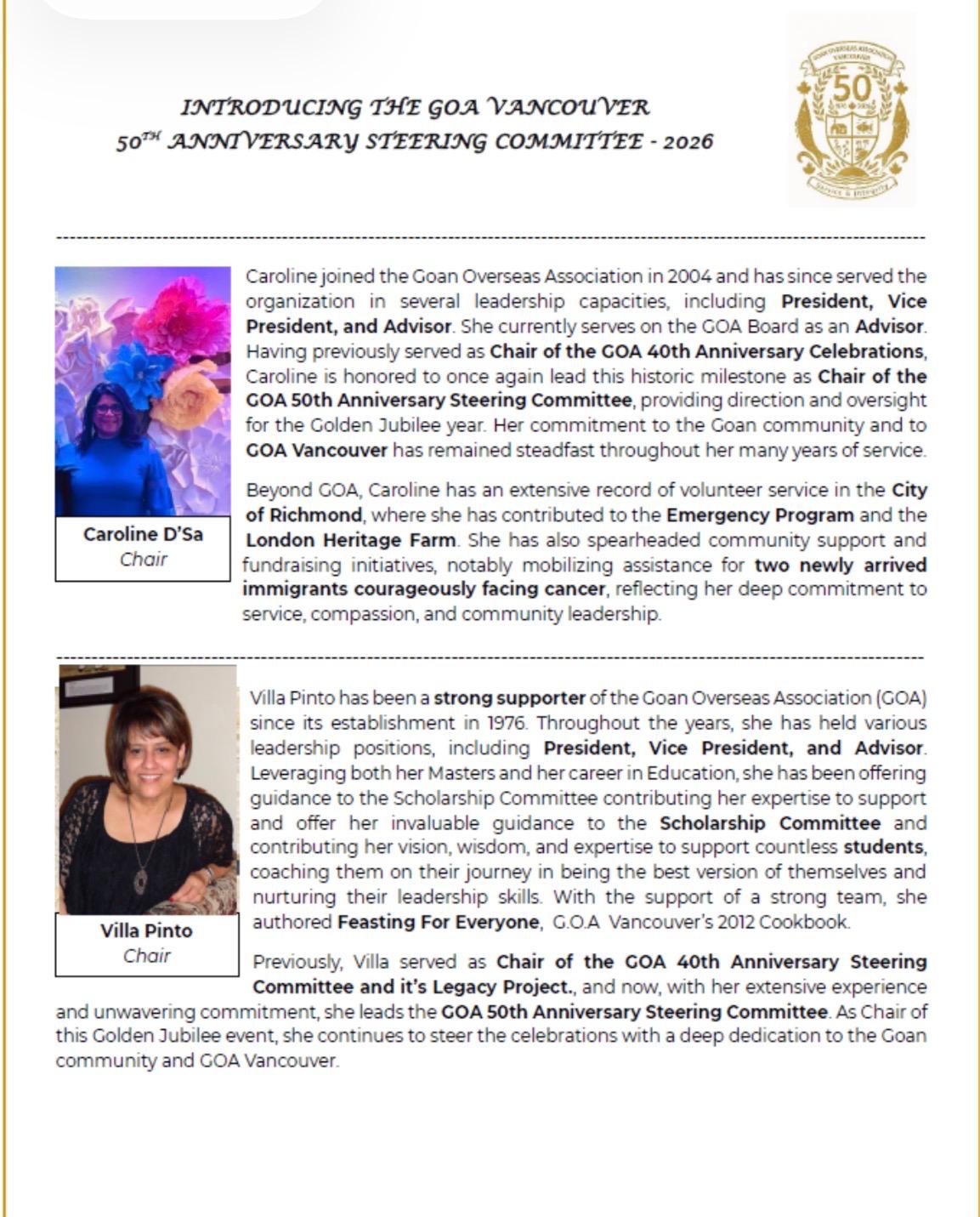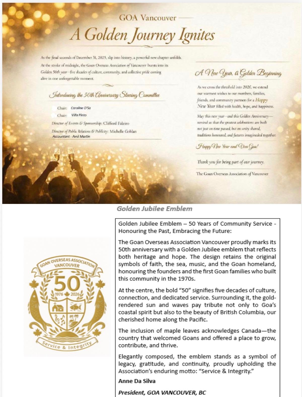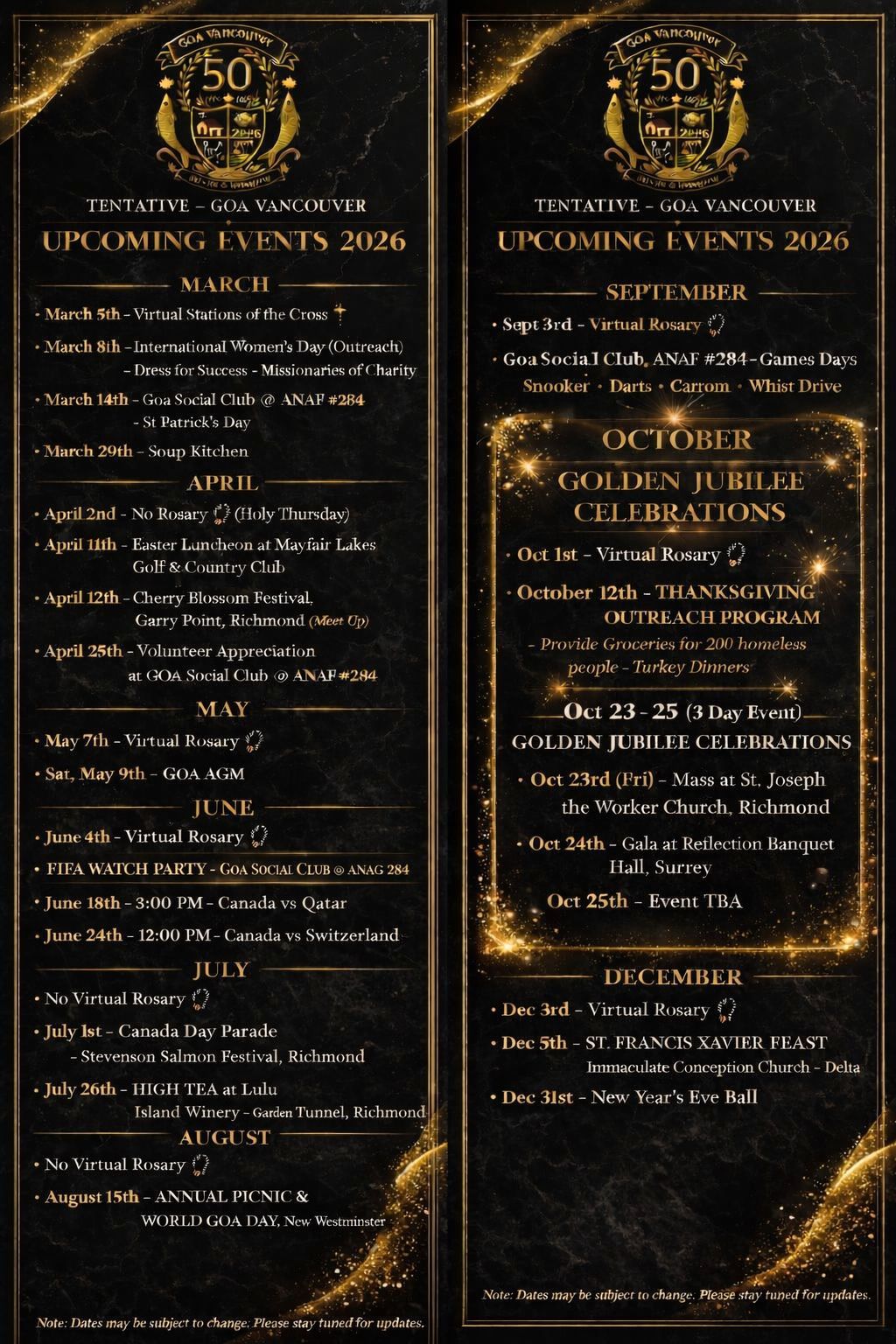 Welcome to the Goan Overseas Association, Vancouver BC, Canada. We are a community of Goans who have settled in Vancouver, BC and have formed an association since 1976. Goans in our community have come from not only Goa but from various other parts of the world like East Africa, UK, Middle East, India, Pakistan etc. Together we have brought our culture and our traditions and we strive to keep them alive in our community.